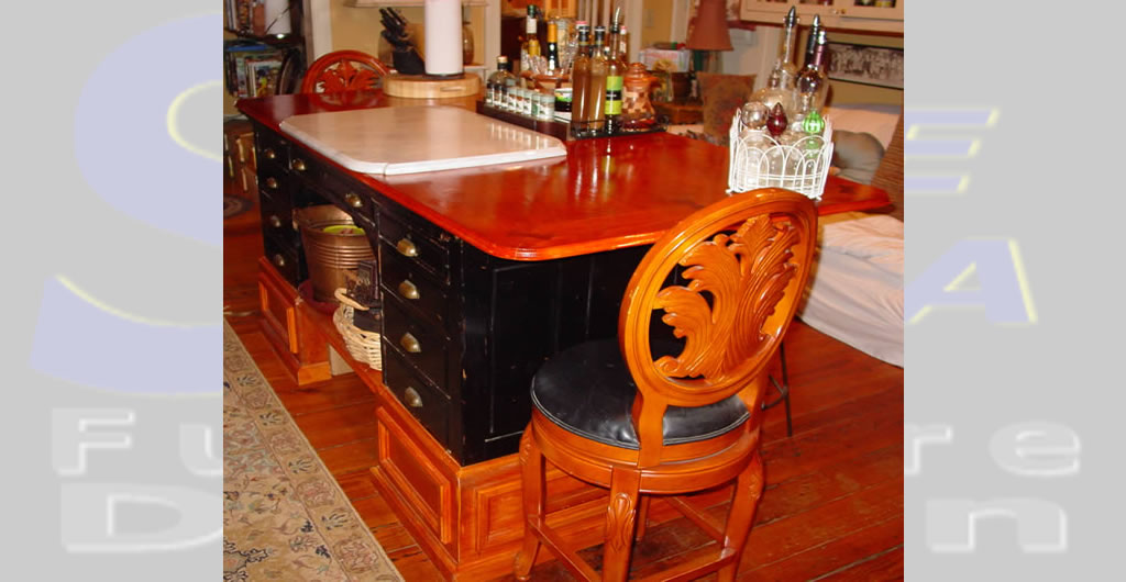 His projects have included building furnishings from scratch with finishes to give them an aged-look to repurposing old furniture and materials for new uses to built-ins for residential and business needs.