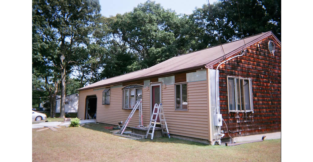 Here is a typical ranch house vinyl siding project that also included replacing a couple of octagon-shaped windows on each of the side peaks. As you will see in these photos, the replacement vinyl siding was installed over the existing clapboard and shingle siding which kept the completetion time for the entire job to 2 weeks.